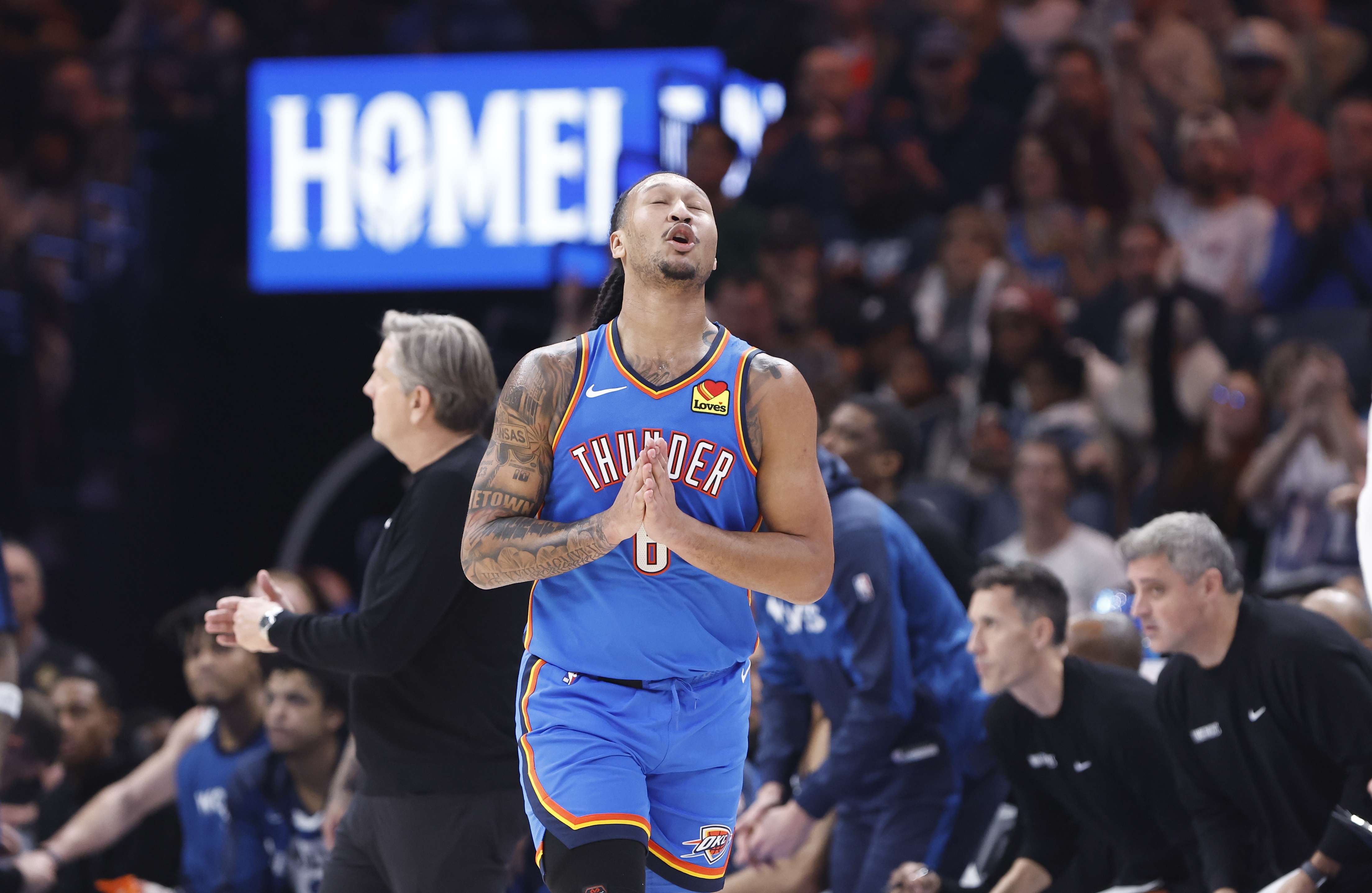 赛后,雷霆球员阿隆-维金斯谈到了队友杰林-威廉姆斯在球队的角色:“他就是那个在场上场下都有作用的角色。他的性格很有感染力,他每天都给我们带来好的感觉。”