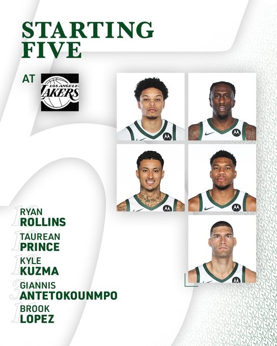 - 客场挑战湖人!雄鹿今日首发:字母哥领衔 表哥缺阵 库兹马战旧主