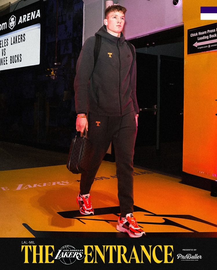 湖人众将入场穿搭:文森特墨镜配项链 布朗尼蜘蛛连帽衫