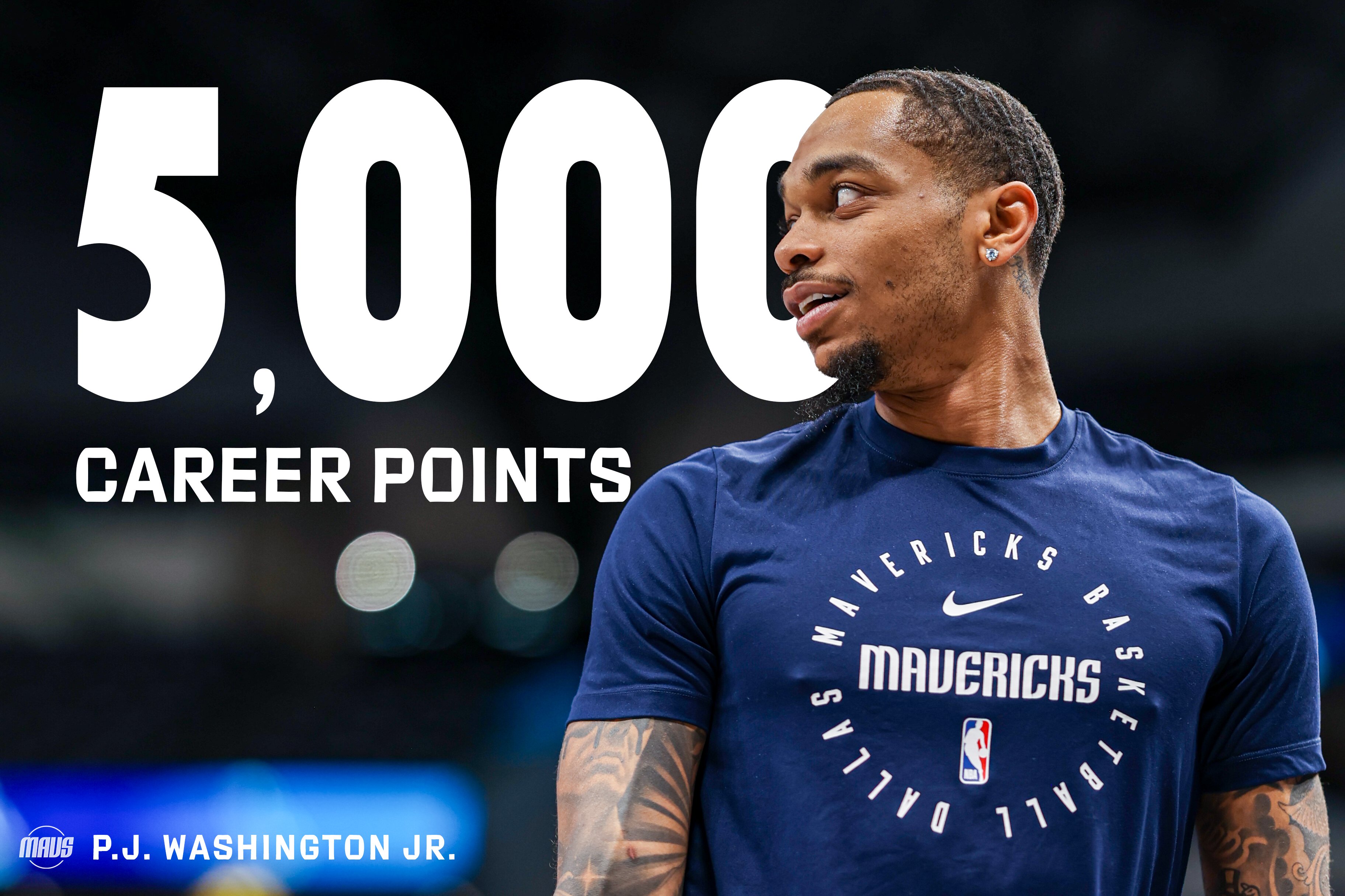 比赛进行到第一节10分02秒时,PJ-华盛顿一记底角三分命中,个人生涯得分突破5000分。