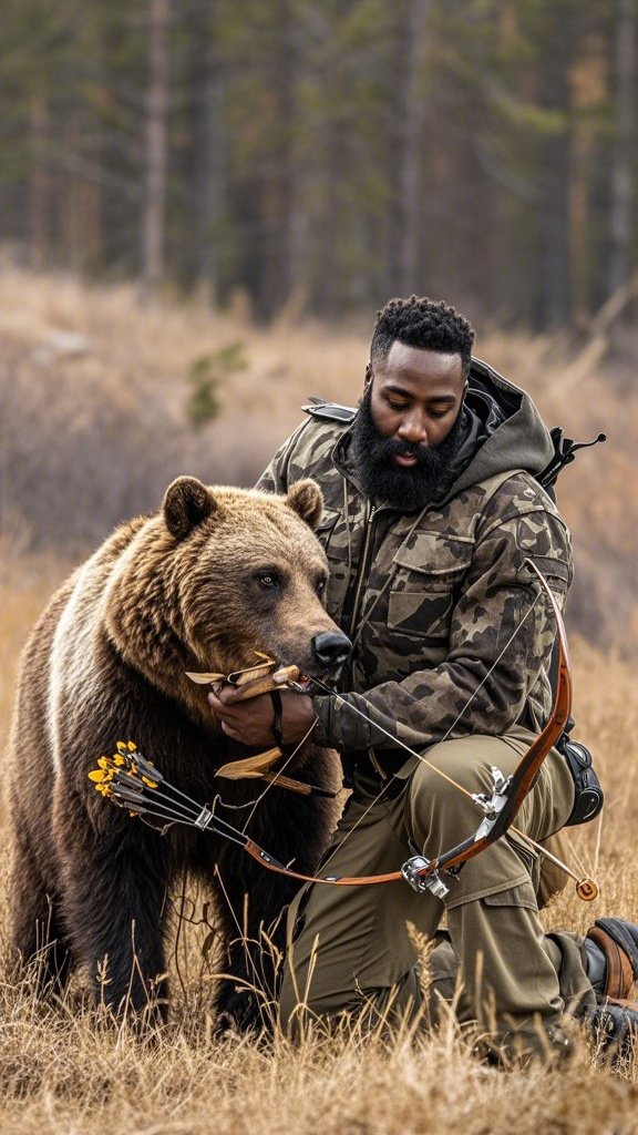 【AI绘图】宠物!哈登化身猎熊客轻松擒拿棕熊~
