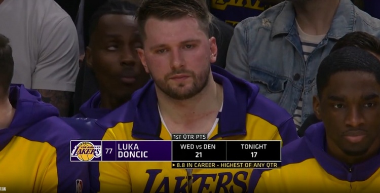 东契奇火力全开半场7三分爆砍29分 詹姆斯找状态 湖人落后公牛3分