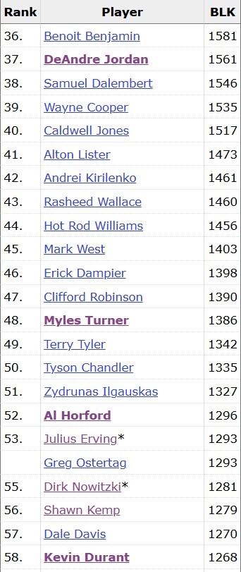- 杜兰特生涯盖帽总数超越戴尔-戴维斯 上升至NBA历史第57位