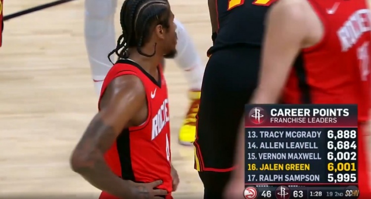 目前,杰伦-格林已经得到14分,他的火箭生涯总得分来到6001分,超越拉尔夫-桑普森,上升至队史第16位。