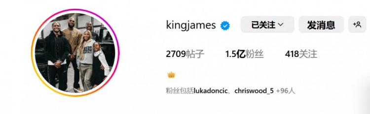 换头像挺勤!詹姆斯再次更换IG头像 这次换成了一家五口全家福