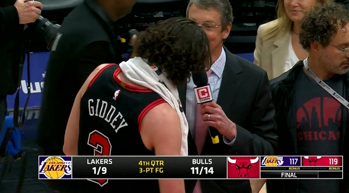 末节,湖人全队三分9投1中,公牛全队14投11中。