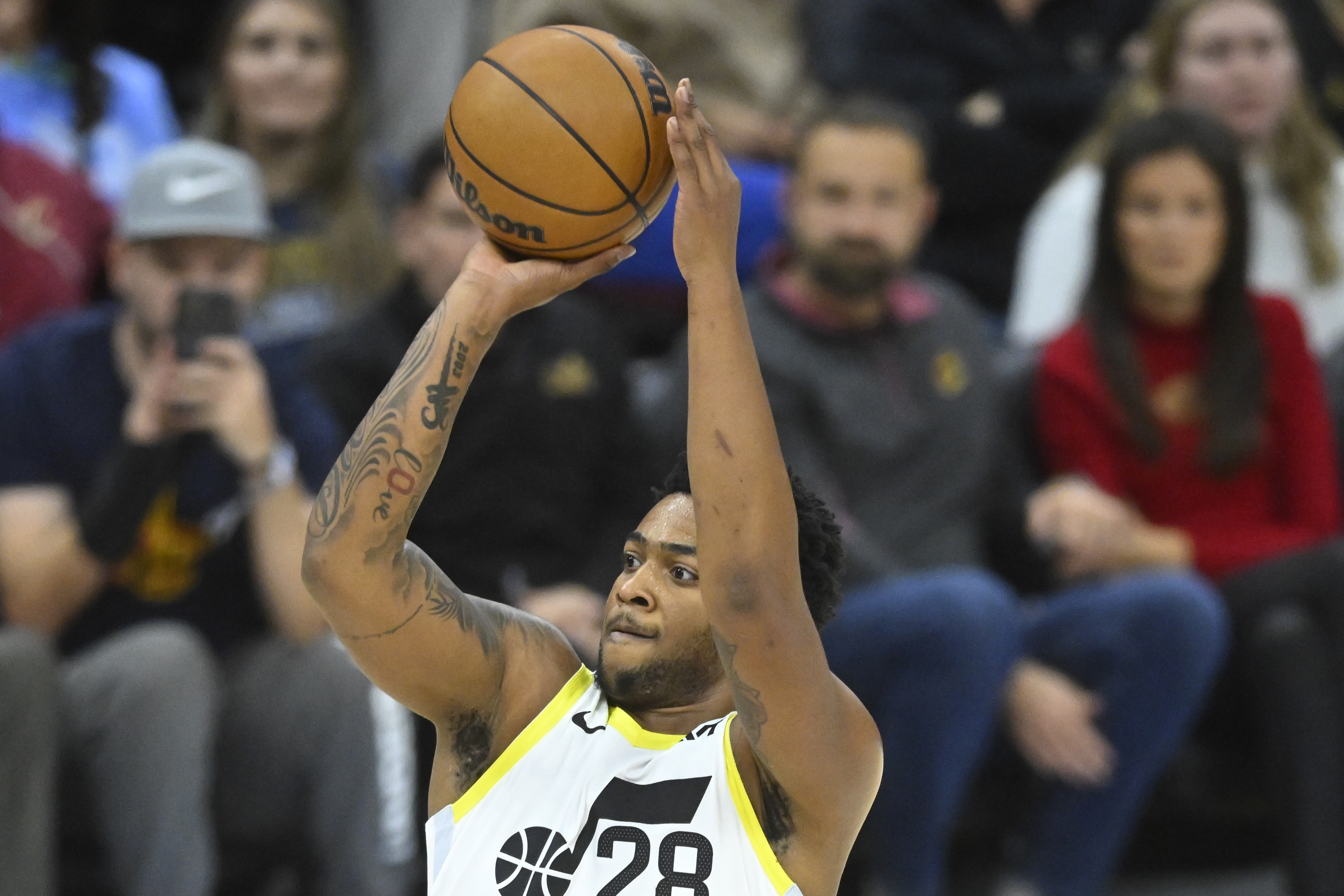 上半场,爵士两名替补森萨博和基昂特-乔治高效发挥,森萨博12分钟三分4投4中,拿到12分2篮板,正负值+1;