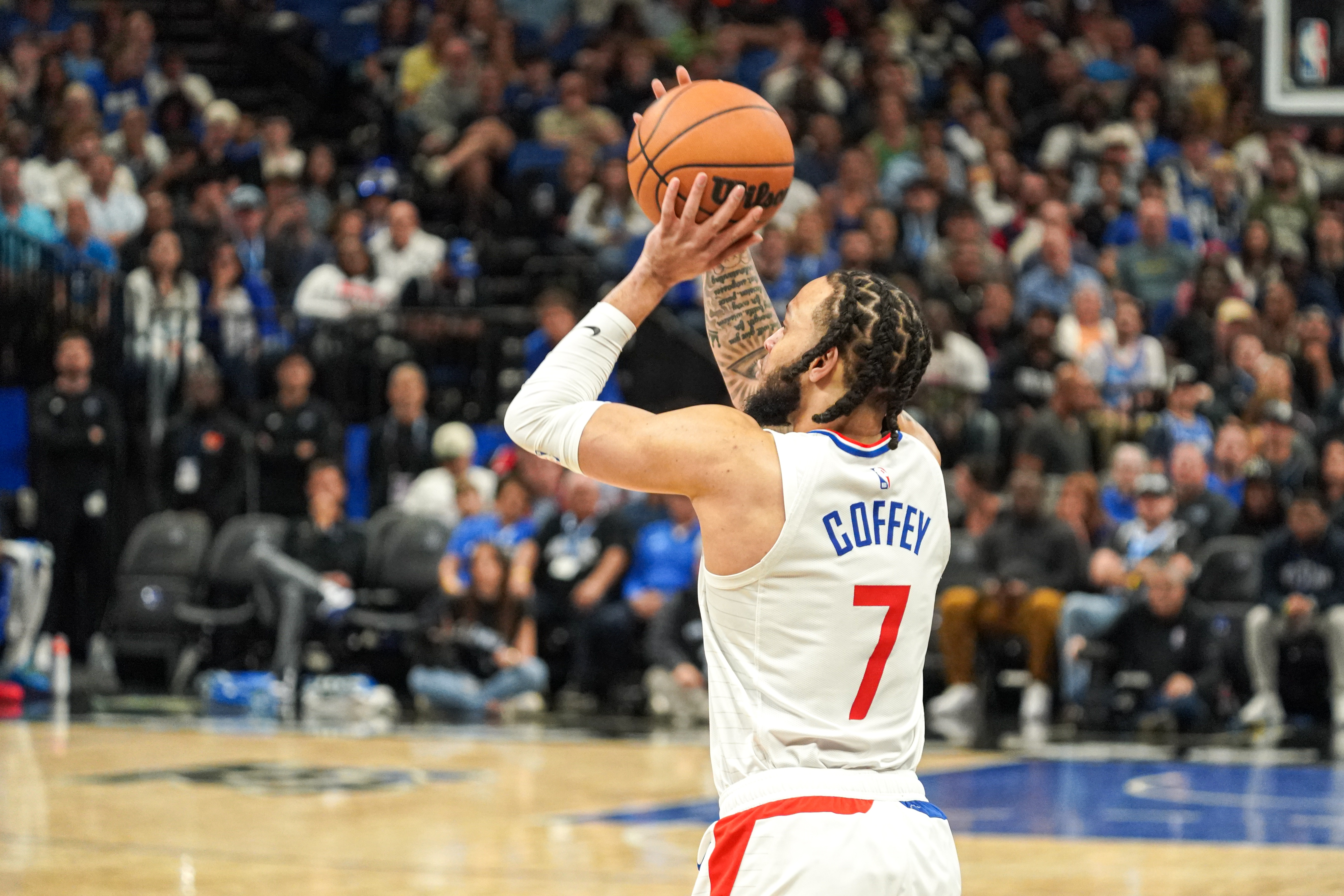 本场比赛,上一场被DNP的快船球员科菲获得了上场机会,他以球队第十人的身份登场,打了13分半钟,4投1中(三分3中1)、罚球2中2,得到5分1篮板1助攻1抢断,出现1次失误,正负值-6。