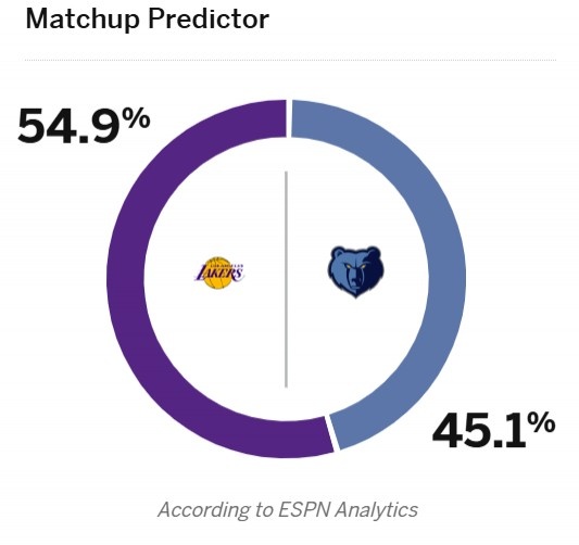 卡位战/老詹里程碑/灰熊换帅!ESPN预测胜率:湖人54.9%微占优势