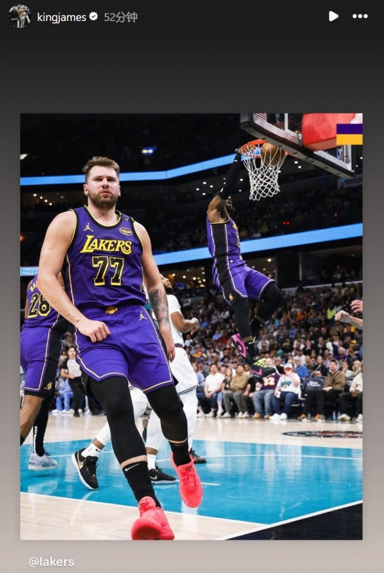 这次是东詹!东契奇助攻詹姆斯扣篮后再现世界名画 两人皆转发