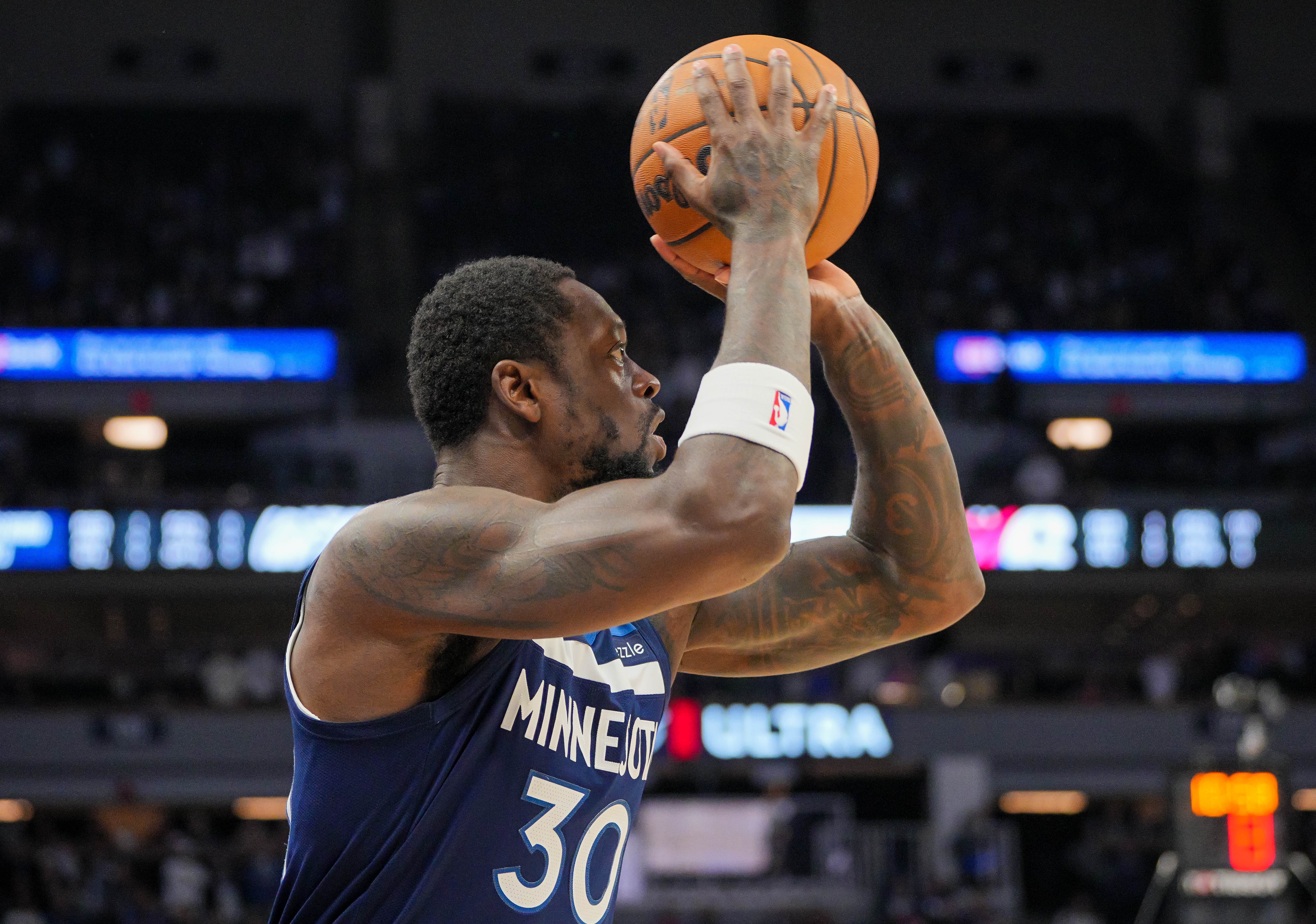 森林狼内线兰德尔本场比赛表现全面,在场上拼抢积极,而且还能够带动队友拿分。
