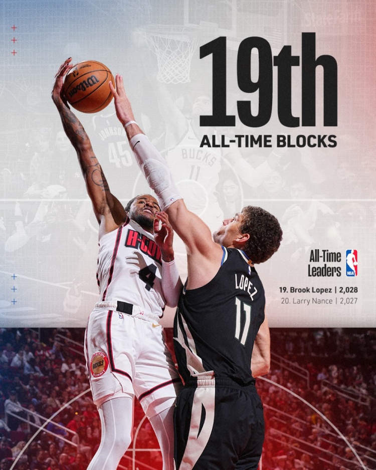 这样一来,大洛佩斯生涯盖帽数达到2028个,超越拉里-南斯(2027个)独占历史第19位,下一步将追逐加内特(2037)。