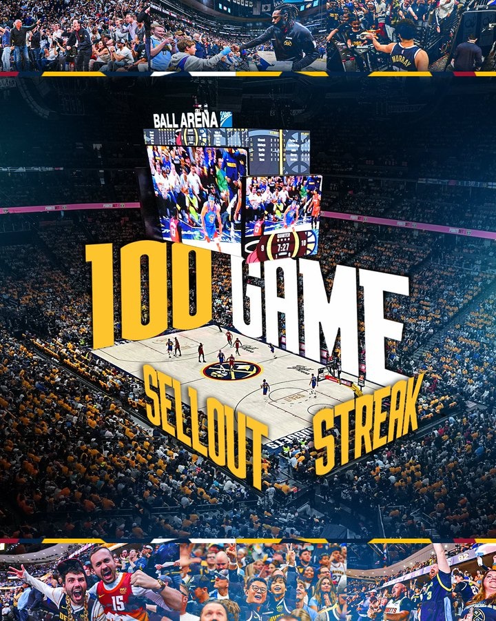 赛后,掘金官推表示,波尔球馆(掘金主场)已经连续100场比赛球票售罄。官推写道:“谢谢你,掘金国度!”