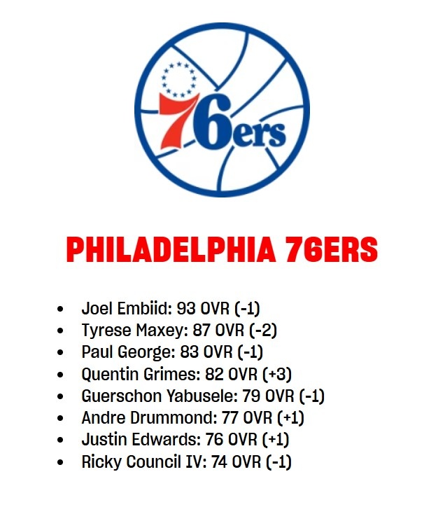 - 76人2K能力值更新:恩比德降至93 马克西降至87 乔治降至83