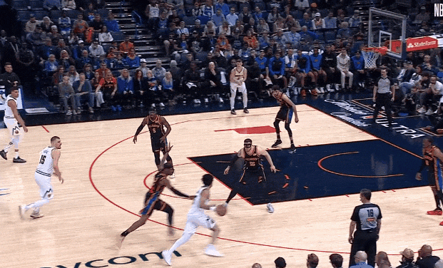 这就是今天雷霆全队绝妙之处:不让约基奇去篮下。