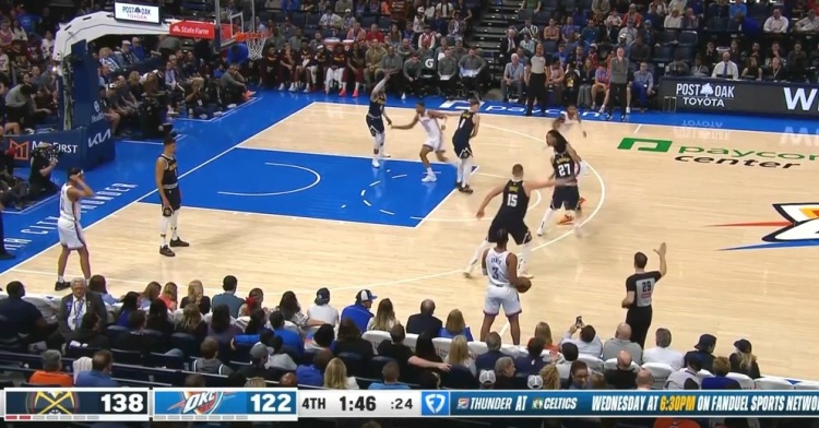 投子认负!还剩1分46秒雷霆换下主力 落后16分认输了