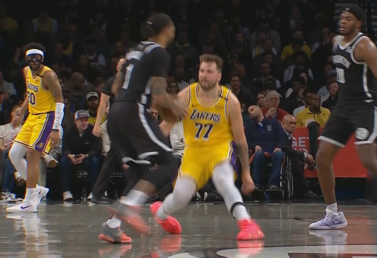 吓人!东契奇没站稳扭了一下脚 好在没事&仍在场上
