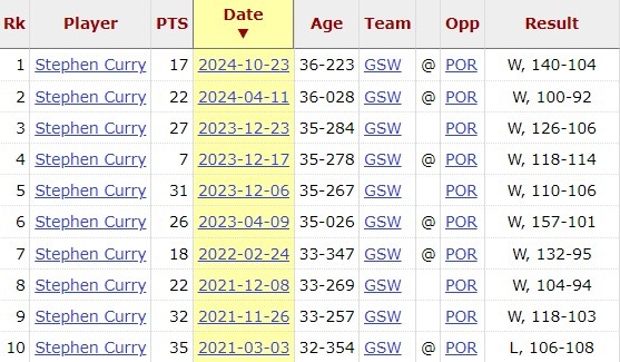 - 库里目前对开拓者10连胜 他上次输给开拓者还是1469天前