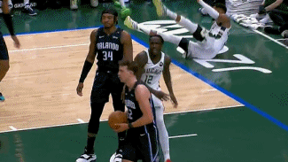 技巧大师!东契奇后撤步压24秒造杰伦-布朗犯规 笑纳两罚且全中