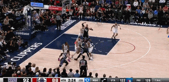 巨星球!哈登关键撤步三分强行命中 助快船超出3分