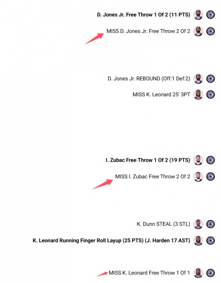 - 决胜时刻!祖巴茨、琼斯、小卡90秒内丢3罚球 全场快船才丢4个