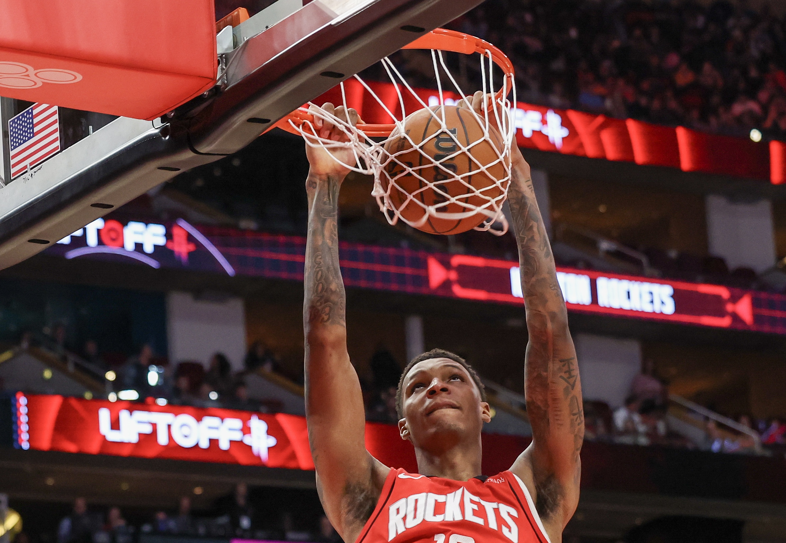 火箭尝试采用大阵容之后的四场比赛里,小贾巴里-史密斯场均出战30.5分钟,能得到15.5分、6.5个篮板,投篮命中率为45.7%,三分球命中率为40.7%。