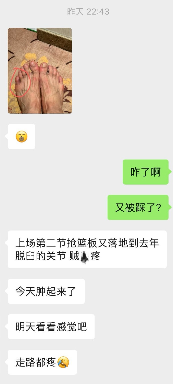 李弘权上一场第二节抢篮板的时候又伤到了去年脱臼的脚趾关节,赛前吃了两粒止疼药上去打的。