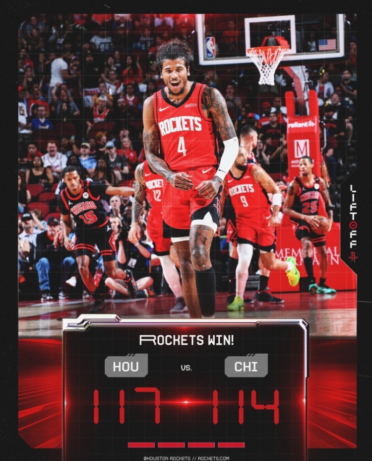 赛后,火箭官方发布赢球海报,杰伦-格林登上封面。