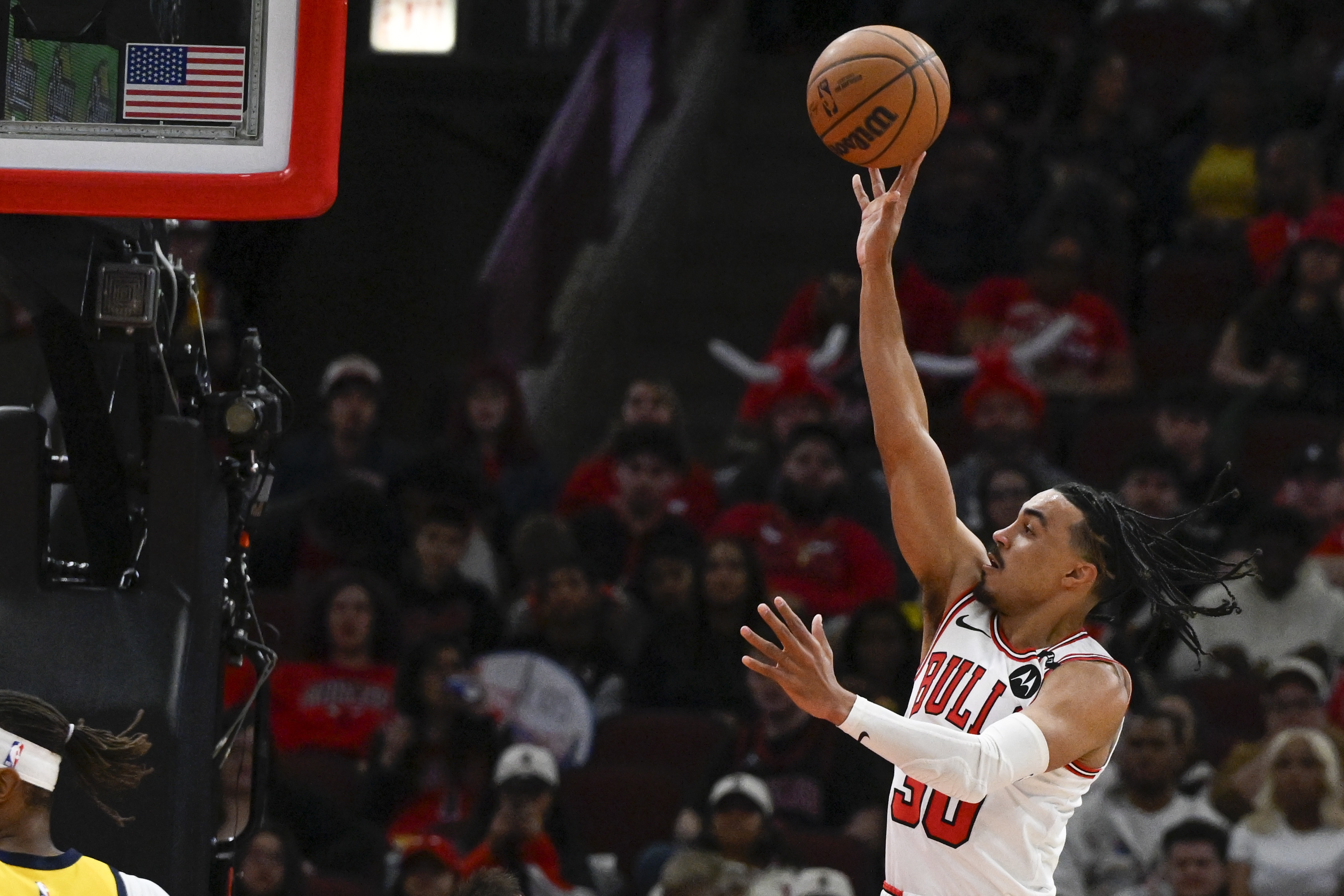 上半场比赛,公牛后卫特雷-琼斯发挥十分不错,进攻端里突外投很高效,且能串联球队,他6中5,三分1中1,罚球2中1砍下12分1篮板5助攻。