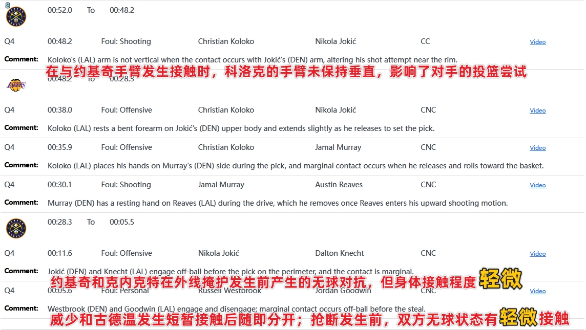 - 湖掘L2M:所有判罚正确 科洛克手臂未伸直 约基奇掩护前轻微接触