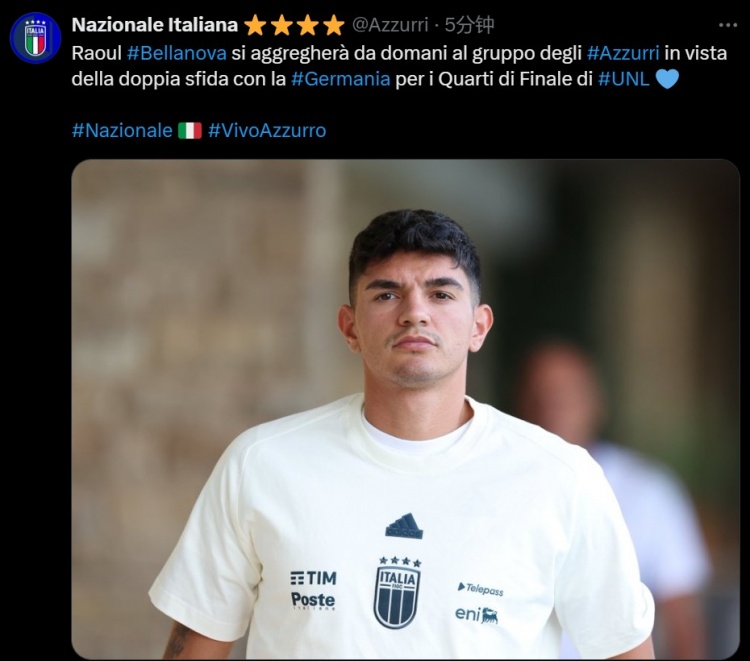 扎卡尼&坎比亚索有伤在身!官方:意大利补招24岁右后卫贝拉诺瓦
