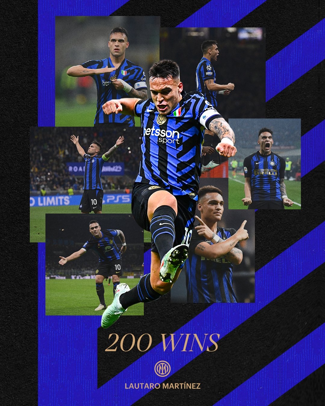 国米官方数据统计显示,27岁的劳塔罗也达成了俱乐部200胜里程碑。国米官推也表示:“我们的旗帜人物已经达成了蓝黑生涯200胜。”