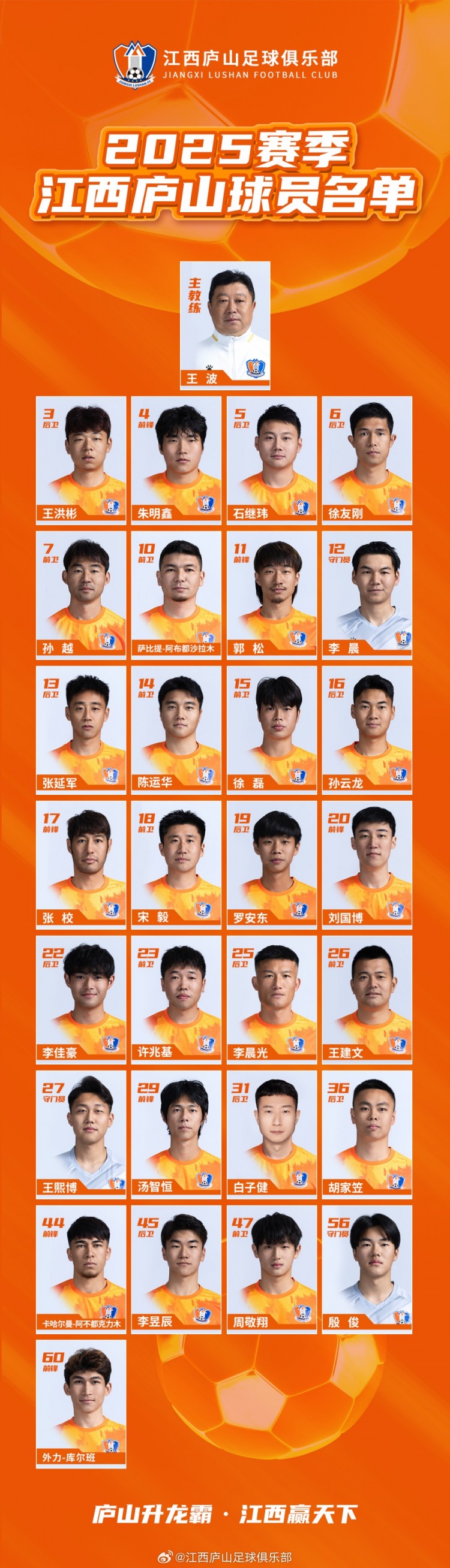 - 江西庐山足球俱乐部2025赛季球员大名单