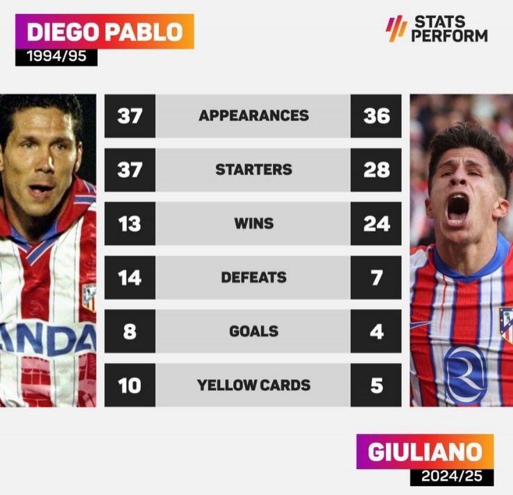 迭戈-西蒙尼(94/95赛季)vs朱利亚诺-西蒙尼(24/25赛季)