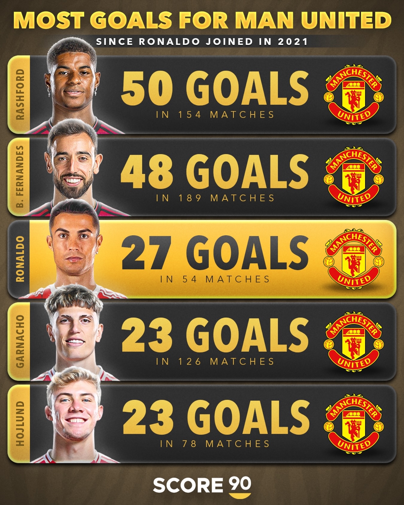 曼联2021年至今射手榜: