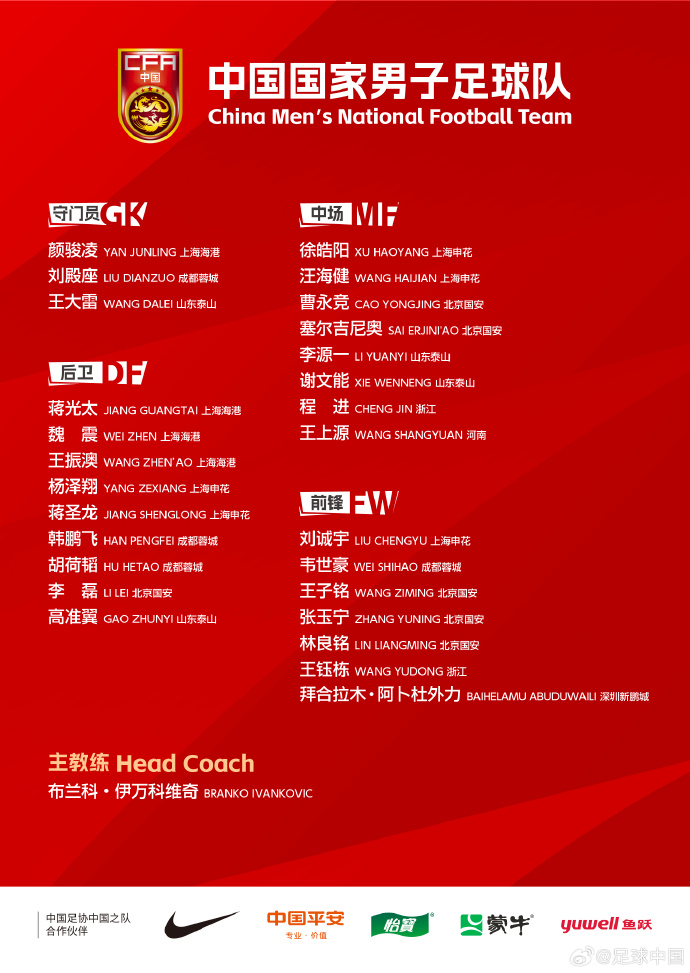 规则规定,中国队本场比赛至多报名23名人。从相关讯息渠道获知,根据球队的训练情况,落选球队本场比赛报名阵容的4名很可能分别是来自国青前锋王钰栋、刘诚宇、中场球员程进、边后卫王振澳,归化新人塞尔吉尼奥确定入选。