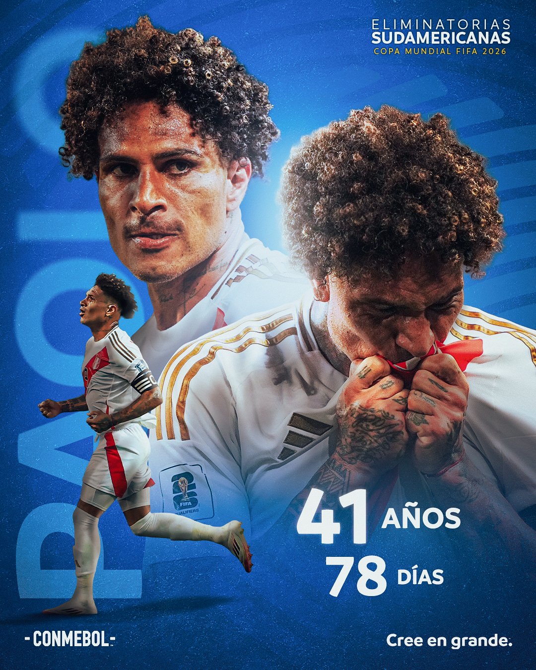 - 41岁78天!秘鲁前锋保罗-格雷罗破门,成南美世预赛最年长进球者