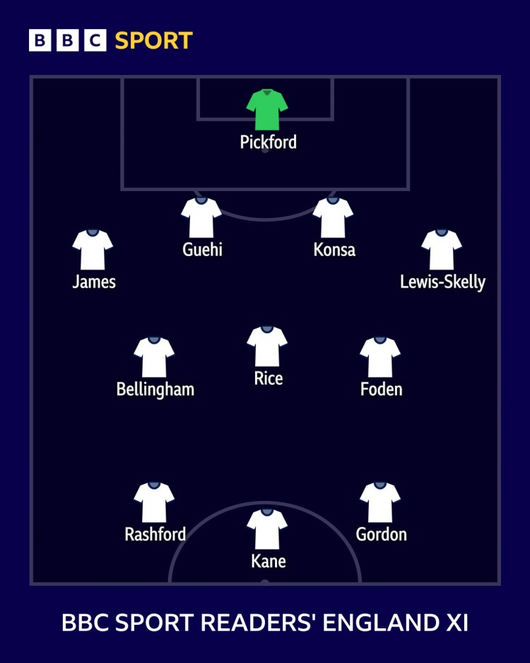 - BBC读者票选英格兰首发:凯恩、拉什福德、戈登组成锋线