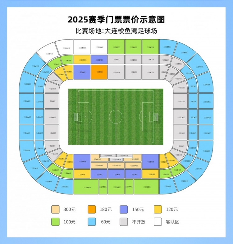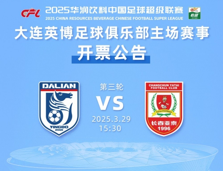 - 大连英博新赛季主场首战下周一开票,票价60-300元分为6档