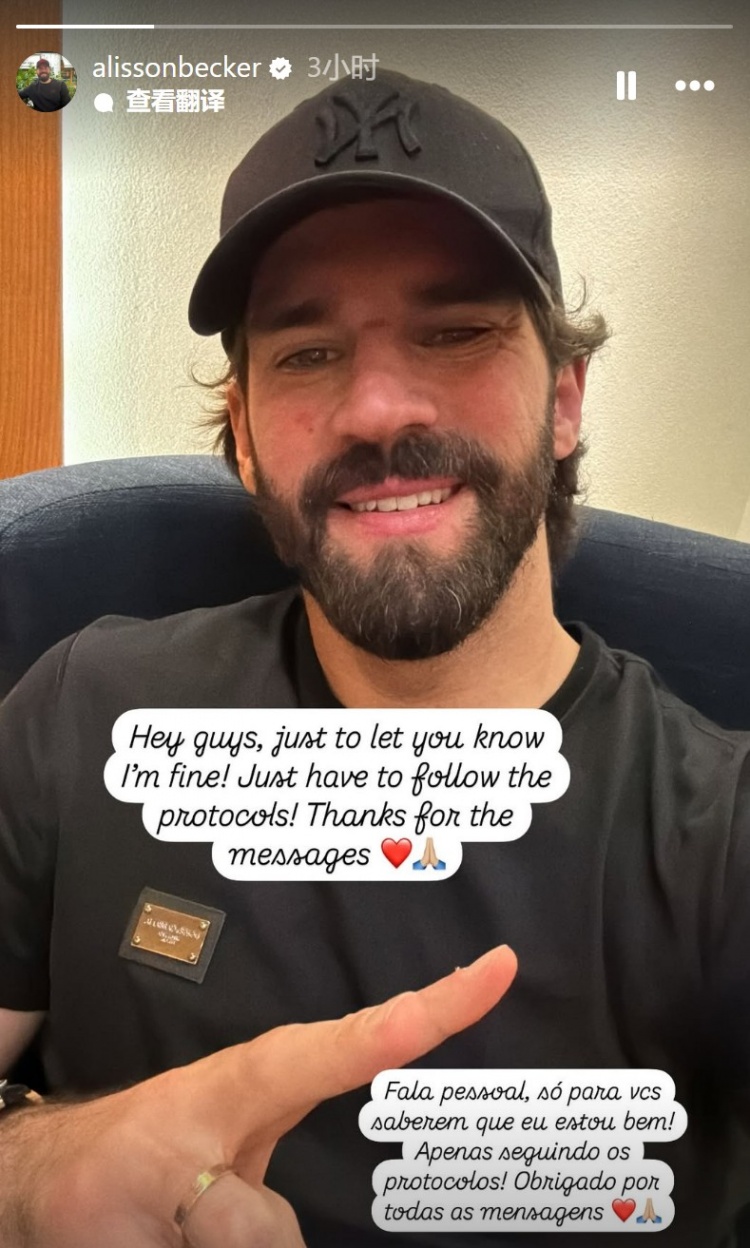 - 阿利森报平安:我情况很好,只是必须要遵循脑震荡保护协议