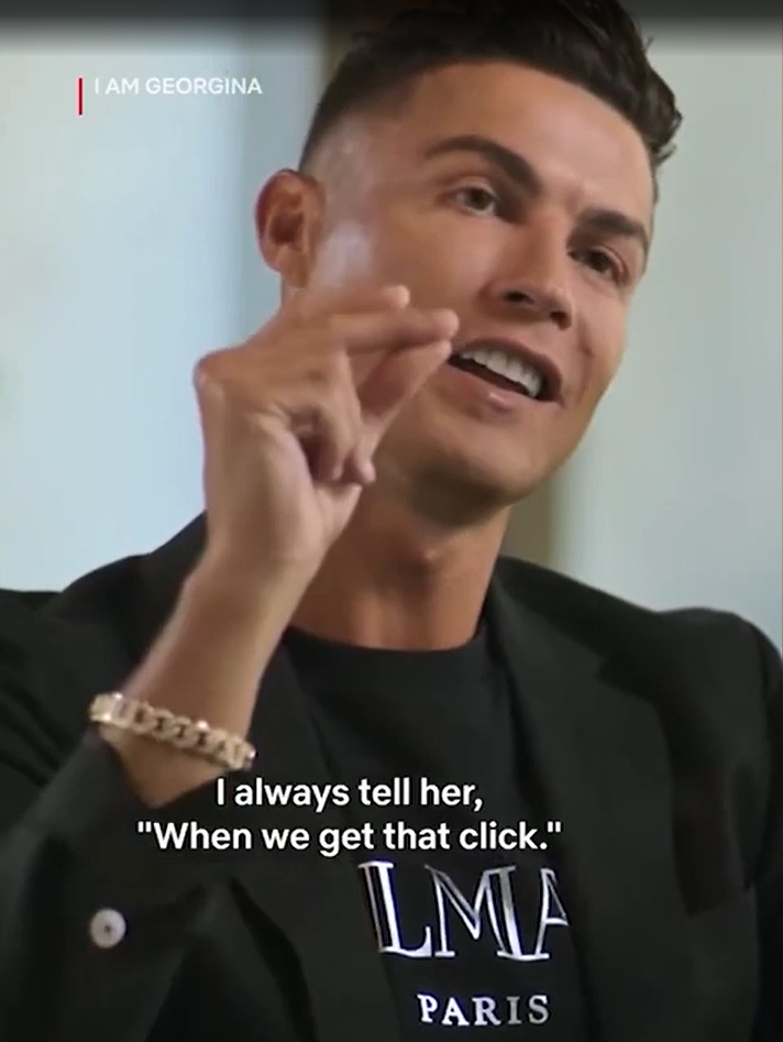 C罗讲道:“我一直告诉她,‘等我们找到那个契机’(C罗打了个响指),就像生活中很多事一样,她明白我的意思。”