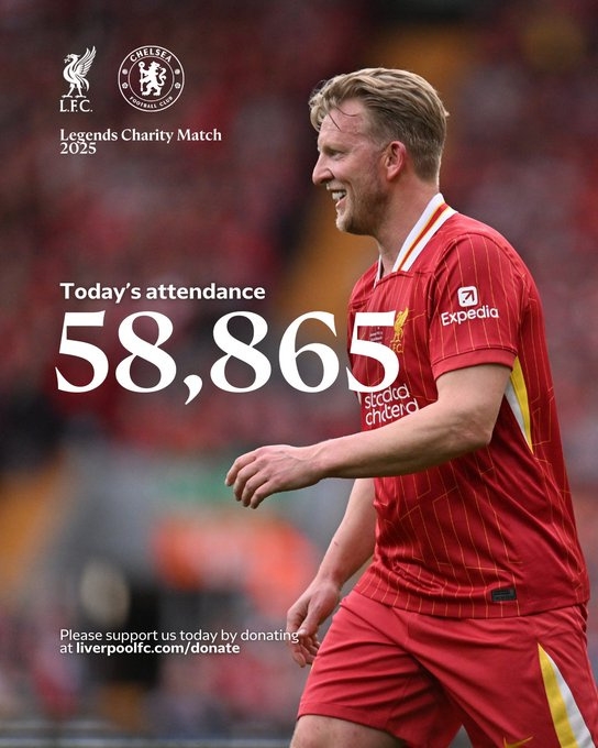 捧场!利物浦vs切尔西传奇慈善赛现场共计有58865名观众