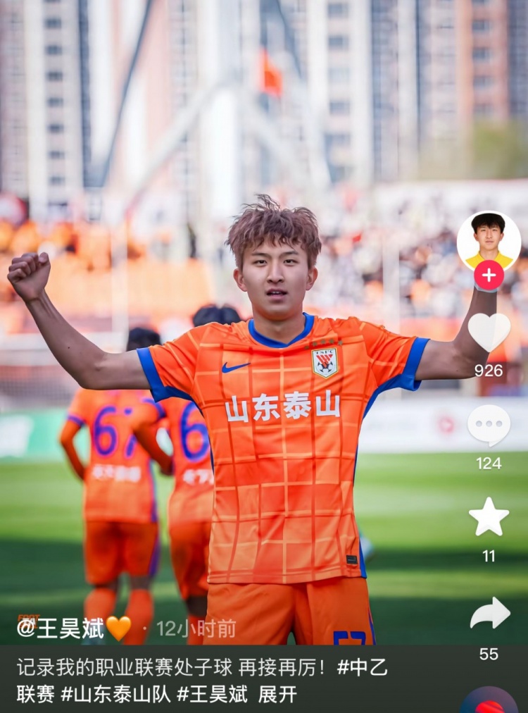3月23日讯 泰山B队球员王昊斌更新社媒,记录了自己职业生涯的处子进球。