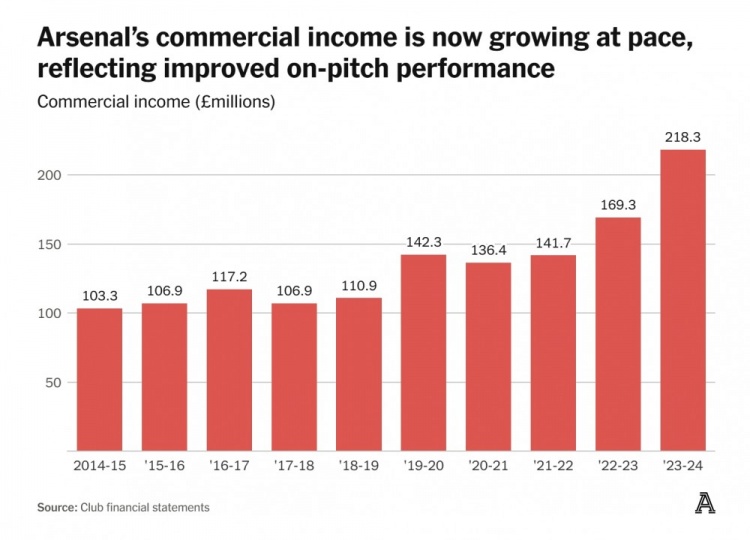 至于商业收入的激增,则是阿森纳近年来最令人欣喜的部分。