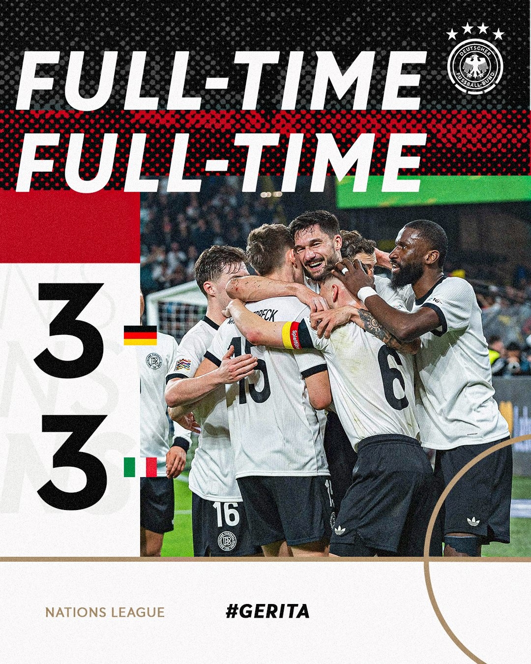 欧国联八强战次回合,德国3-3,总比分5-4战胜意大利晋级,基米希1射2传,基恩梅开二度。