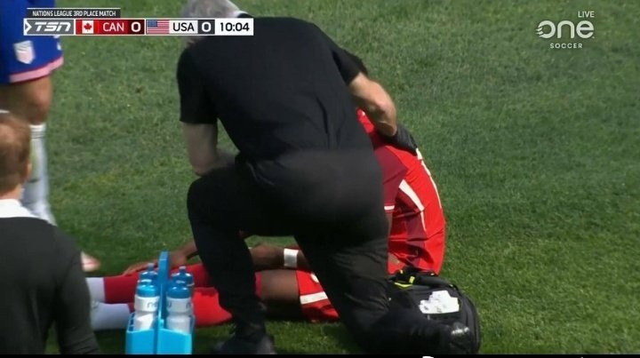 加拿大助教:医生正在评估阿方索的伤情,他被撞了一下感觉不适