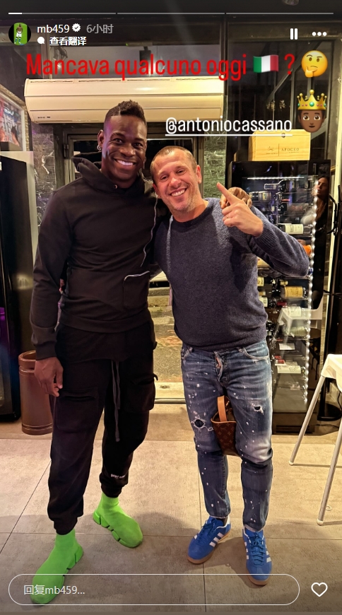 曾联手淘汰德国!巴洛特利晒与卡萨诺合照:今天意大利队少了谁?