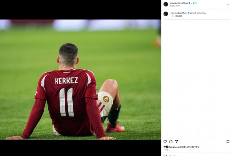 匈牙利本次国际比赛日两战皆墨,两回合1-6输给了土耳其,科尔克兹晒出自己的照片,并写道:“我们会回来的!”