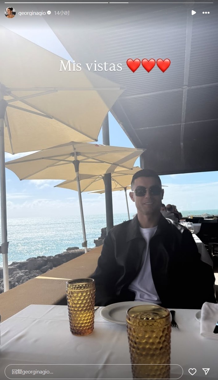 眼里都是爱!乔治娜晒照与C罗海边吃午餐:我的视角❤️❤️❤️