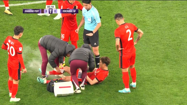 03月04日讯 亚冠精英联赛东亚区1/8决赛首回合,上海海港vs横滨水手。比赛第6分钟,傅欢在一次回传之后向场边招手示意随后倒在场内,似乎是申请换人。